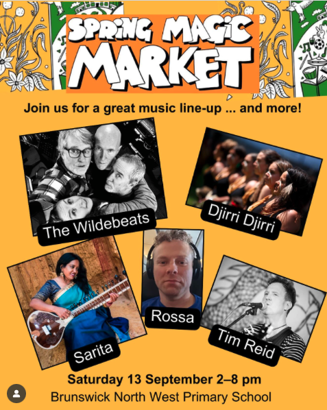 Solo Gig – 13 September @ Spring Market | Brunswick North Primary School Posted on August 28, 2025 by tim reid Playing a solo set at the Spring Market, Saturday 13 September 2025. On around 4pm, Mixing it up with originals and at least 1 or 2 Spring-flavoured songs. Brunswick North Primary School